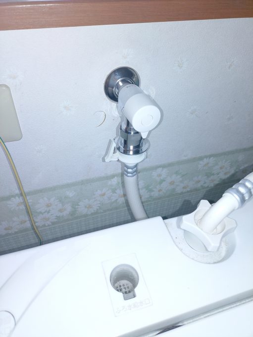 TOTO製の洗濯水栓に取り替えさせていただきました。以前も洗濯専用水栓でしたが、部品が一部なくなっていました。新しい洗濯水栓はホースが抜けても止水するので、安心してお使いいただけます。ご依頼ありがとうございました。