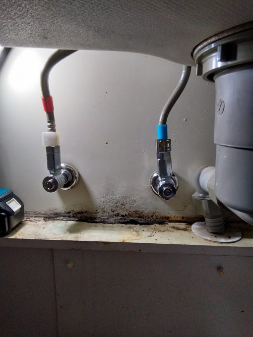 台所蛇口の水漏れでお伺い致しました。点検したところ、止水栓の水漏れを確認致しました。緑錆による劣化が主な原因でした。