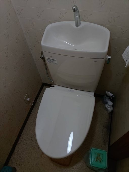 点検させていただきますと、排水弁の劣化でタンクの水が便器に漏れ出ている事が原因でした。20年以上お使いですが、部品交換で対応も出来ますが、他の部品の劣化も進んでいる為、新しいトイレに取り替えの提案をさせていただきました。